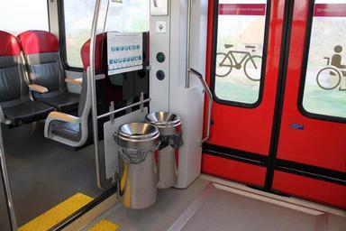 | Keywords: Arriva Spurt afvalbakken balkon.jpg nl Interieur van de Arriva Spurt-dieseltreinen die rijden op de spoorlijnen rondom Leeuwarden en Groningen Balkon en afvalbakken 2012-04-24 own Maurits90 cc-zero Uploaded with UploadWizard Images by Maurits90 Train interiors of Stadler GTW in the Netherlands 2012 in rail transport in the Netherlands |