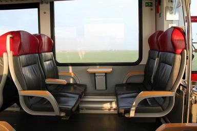 Keywords: arriva spurt train interior seating netherlands transport railway first class