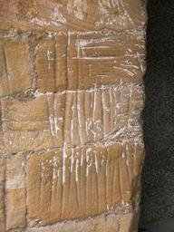 Keywords: Arrow head or slate pencil sharpening marks, Stobo Kirk.JPG en Slate pencil and arrowhead sharpening grooves Stobo Kirk Borders Scotland own Rosser1954 Roger Griffith 2010-04-13 Stobo Kirk