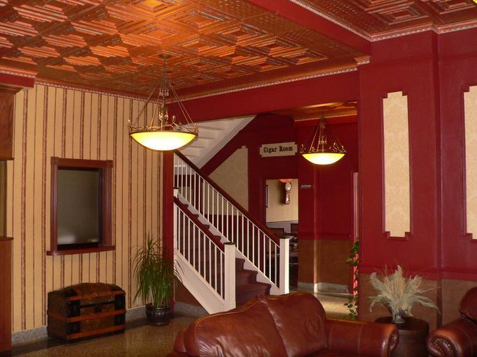 | Keywords: Arrow Hotel interior lobby 1.JPG Arrow Hotel in Broken Bow Nebraska The building was constructed in Prairie School style in 1928 and is listed in the National Register of Historic Places It continues to function as a hotel and restaurant The camera is facing northwest; a flash was used in the photo own Ammodramus 2010-06-03 Pictures by Ammodramus Taken with Panasonic Lumix DMC-FZ20 Arrow Hotel | ||||