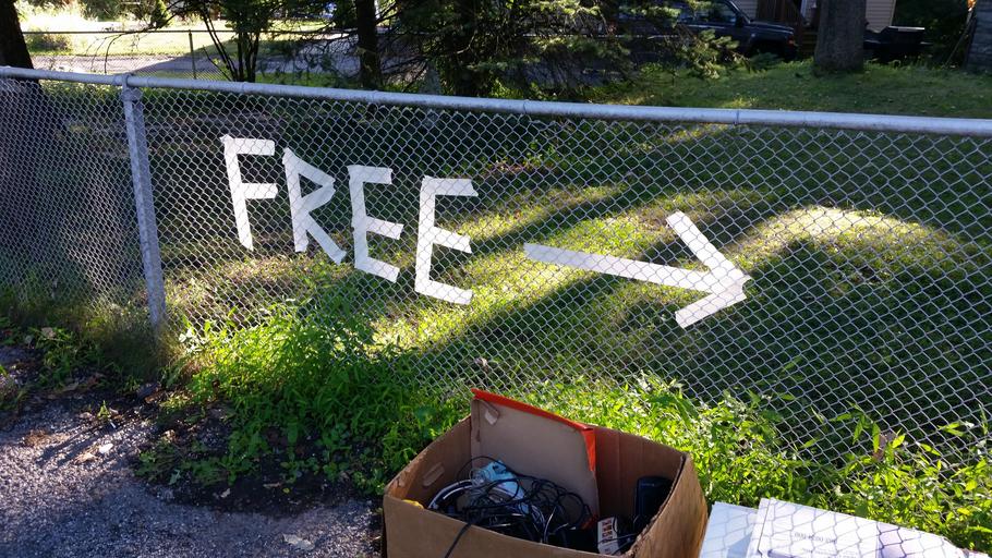Keywords: arrow sign direction free image garage sale street fence free stuff junk yard sale tape boxes old used box outside sale giveaway take curb craigslist curb alert trash