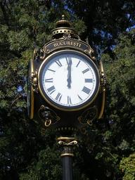 Keywords: art bucharest clock four gold herastrau leaf sided street architecture objects