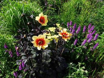 Keywords: art garden flower bed spring blütenmeer flowers yellow purple orange