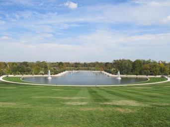Keywords: art hill forest park st louis missouri art museum panoramic fountain landscaping landscape 1904 world's fair 1904 louisiana purchase exposition blue sky sunny sky lawn hill