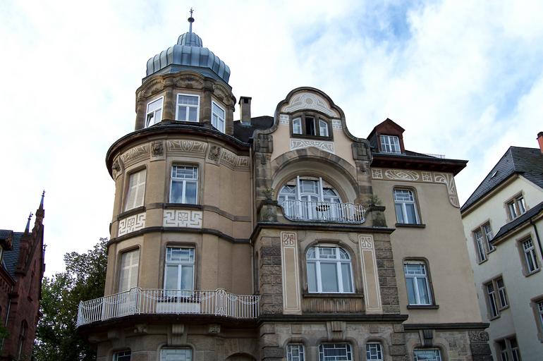 Keywords: art nouveau gründerzeit weststadt heidelberg parked cars villa home ornaments facade courtyard building hotel town home balconies
