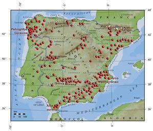 | Keywords: Arte esquematico iberico.png Localización de las principales estaciones con arte rupestre esquemático de la península Ibérica serf work 2006-09-24 José-Manuel Benito Álvarez > Locutus Borg Maps of archaeological sites in Spain Schematic rock-art from Iberian peninsula Prehistoric Iberia Maps indicating sites of discovery Maps of Pre-Roman Iberia Maps of the Iberian Peninsula |