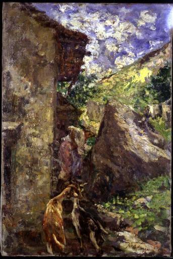 | Keywords: Artgate Fondazione Cariplo - Bazzaro Leonardo, Pastorella con capre presso un rustico.jpg Artwork Creator Leonardo Bazzaro Herdsmen ™s Huts at Macugnaga and Alpine Scene in the Cariplo Collection due to the more rapid execution with broad brushstrokes and large patches of colour which distinguished the artist ™s maturity Proveniente da una collezione privata il dipinto raffigura una pastorella sulle scale di un rustico; presso di lei sostano due capre in attesa del cibo La scena è racchiusa a sinistra dall ™edificio a destra da un masso roccioso e in alto da un frammento di cielo attraversato da nubi Il soggetto di cui si conosce il bozzetto venduto all ™asta nel 1942 alla Galleria Geri di Milano è ispirato alla vita contadina osservata nei frequenti soggiorni condotti dall ™ultimo decennio del secolo nel Verbano fra Gignese e l ™Alpino e in Valle d ™Aosta La fortuna di questa pittura di paesaggio che caratterizza accanto ai soggetti lagunari la produzione di altri esponenti del naturalismo lombardo quali Mosè Bianchi fa sì che pur in anni ormai avanzati del Novecento Bazzaro la riproponga con successo al pubblico più tradizionale Per quanto ispirato agli stessi luoghi il dipinto differisce dalle altre opere in Collezione Baite a Macugnaga e Scena alpestre per una pittura più rapida che condotta con ampie pennellate e a larghe macchie di colore contraddistingue la maturità dell ™artista between 1915 1920 oil canvas Size cm 90 60 Sergio Rebora Leonardo Bazzaro Pastorella con capre presso un rustico in Sergio Rebora a cura di Le collezioni d ™arte L ™Ottocento Fondazione Cassa di Risparmio delle Provincie Lombarde Milano 1999 n 13 p 75 ill object history credit line L Bazzaro signature bottom right Laura Casone http //www artgate-cariplo it Artgate Fondazione Cariplo accession number AH01689AFC http //www artgate-cariplo it Artgate Fondazione Cariplo WikiAfrica/Artgate PD-old-auto 1937 Leonardo Bazzaro |