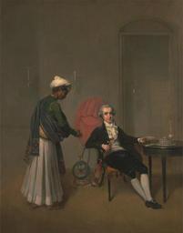 | Keywords: Arthur William Devis - Portrait of a Gentleman, Possibly William Hickey, and an Indian Servant - Google Art Project.jpg ~ 1785 Bay S06 201 London 1762 London 1822 Arthur male 2336260 William Devis British 1762 - 1822 /collection/yale-center-for-british-art/artwork/portrait-of-a-gentleman-possibly-william-hickey-and-an-indian-servant-arthur-william-devis/2434762/ Arthur William Devis Artist /artist/arthur-william-devis/4132660/ 4132660 /collection/yale-center-for-british-art/ Yale Center for British Art 2305845 http //britishart yale edu/ 2/24/2012 12 26 10 AM /collection/yale-center-for-british-art/artwork/portrait-of-a-gentleman-possibly-william-hickey-and-an-indian-servant-arthur-william-devis/2434762/ 1780 ca 1785 servant Hickey William 1749 “1827 lawyer in India and memoirist Indian smoking hookah portrait letter Oil on canvas 1060 2434762 False 1790 3/24/2012 9 14 46 PM YCBA/lido-TMS-825 http //collections britishart yale edu/vufind/Record/1671094 Yale Center for British Art Paul Mellon Collection painting 1780 1800 London Creation w835 x h1060 cm ca 1785 False 0 783203125 Item portrait-of-a-gentleman-possibly-william-hickey-and-an-indian-servant-arthur-william-devis Portrait of a Gentleman Possibly William Hickey and an Indian Servant p 835 No inscription Inscription _Signed_and_Dated Not signed not dated Bay S06 201 Oil on canvas servant Hickey William 1749 “1827 lawyer in India and memoirist Indian smoking hookah portrait letter special url_id FwEbNuzN_ybKaQ PD-old-100-1923 1822 Arthur William Devis Google Art Project works by Arthur William Devis 18th-century portrait paintings in the Yale Center for British Art Hookahs in art 1780s portrait paintings 18th-century oil portraits of sitting men at full length |