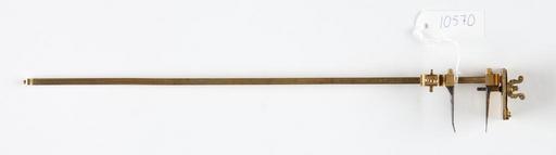 Keywords: Artillerimåttstock av förgylld mässing - Skoklosters slott - 92849.tif LSH artwork Christoph Dressler Drechsler Dreshler Drexler bössmed sv Två stålspetsar Den ena insatt i skjutbar mässinghylsa med skruv för fasthållning Den andra regelbar med fininställningsskruv som överför måttet till rund skalbricka graderad 1 -100 av förgylld mässing placerad mot en rektangulär platta vid måttstockens ena ände Vid måttstockens andra ände liten konvext fyrsidig knopp Mässingshylsans skruvhuvud platt och format som två motställda inåtböjda voluter med spets emellan Fininställningsskruvens huvud har två platta utböjda volutformade vingar med ansiktsprofiler nedtill <br/>Skalor <br/>1 palm fininställning + 1-32 275 mm <br/>2 Eisen 32 lot + 1-30 pfvnt 34 + 103 mm <br/>3 Bley 32 lot + 1 -40 pfvnt 30 + 103 3 mm <br/>4 Zihn 32 lot + 1-30 pfvnt 34 5 + 106 3 mm original caption Artillerimåttstock av förgylld mässing <br/> Nyckelord Måttstock Föremålsbild Mätinstrument ca other date - 1600 1625 size mm 35 2 39 6 310 SKO Carl Gustaf Wrangel Brahe grevliga ätten nr 1 place of origin original filename sm_dig5509 31674 inventory number SKO 10570 92849 CC-BY-SA Fredrik Andersson Length measuring devices Measuring instruments Scientific instruments Fredrik Andersson Media contributed by LSH unmatched creator Media contributed by LSH 2014-11