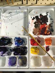Keywords: artist palette artist paint brush and paints bright colors