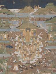 | Keywords: Artist Unknown, Japan - Taima Temple Mandala- Amida Welcomes Chûjôhime to the Western Paradise - Google Art Project.jpg commons date commons medium commons dimensions commons institution commons location commons references commons object_history commons exhibition_history commons credit_line commons inscriptions commons notes commons accession_number commons source commons permission commons other_versions commons zoom core title Taima Temple Mandala Amida Welcomes Chûjôhime to the Western Paradise core creator Artist Unknown Japan core date dateCreated 1500/1599 core location Japan core format w109 06 x h151 45 mm image core type Painting core relation http //quod lib umich edu/m/musart/x-2002-sl-1 169/2002_1 169 JPG lasttype boolean;lastview thumbnail;resnum 1;sel9 ic_exact;size 20;sort relevance;start 1;subview detail;view entry;rgn1 musart_an;select1 starts;q1 2002 2F1 169 core format medium hanging scroll ink color and gold on silk c-049760c9 customtext medium_and_support_extent complete google display_date 1500/1599 google is_artproject TRUE google is_gigapixel FALSE google is_secured TRUE google partner/id 00000000049760c9 google picasa_token jdfDqY7ZbI5H2huNBtTdpHb4D14 special url_id RwHq_GcB8DYMLg google partner/name University of Michigan Museum of Art special partner/name_no_lang University of Michigan Museum of Art PD-old-100-1923 Google Art Project works by unknown artist Japan University of Michigan Museum of Art Thangka Sukhavati |