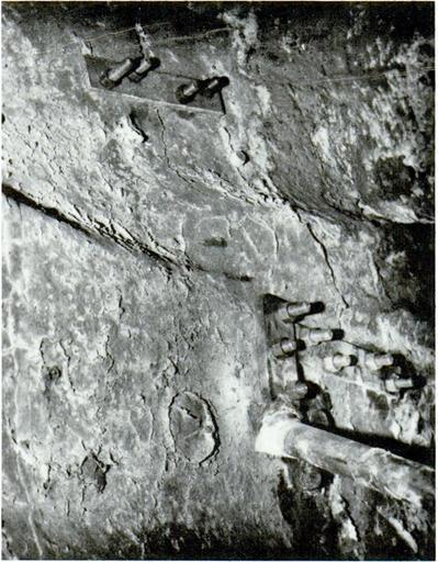 | Keywords: Arts of Peace - crack held together by tie plates and bolt - 1971.jpg en A crack in the bronze statue The Arts of Peace held together with bolts tie-plates and flanges The statue designed by James Earle Fraser in 1929 is located in West Potomac Park in Washington D C in the United States http //hdl handle net/2027/uiug 30112101555396 urlappend 3Bseq 188 Ogburn Fielding; Passaglia Elio; Burnett Harry C ; Kruger Jerome; and Pickelsimer Marion L Restoration of Large Gilded Statues Using Various Electrochemical and Metallurgical Techniques In Corrosion and Metal Artifacts A Dialogue Between Conservators and Archaeologists and Corrosion Scientists National Bureau of Standards Special Publication 479 Code XNBSAV Benjamin Floyd Brown et al eds Washington D C U S Government Printing Office 1977 p 174 1977 The Arts of Peace PD-USGov |