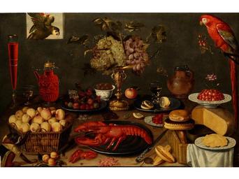 | Keywords: Artus Claessens - Large still life with lobster and parrot.jpg Artwork Creator Artus Claessens 1625-1644 oil canvas cm 80 5 125 5 accession number object history credit line Sold at Hampel on 30 June 2011 Munich lot 291 https //www hampel-auctions com/a/Artus-Claessens-taetig-zw-1600-und-1644 html a 85 s 237 id 91856 acl 822501 PD-old-100 Artus Claessens 17th-century still life paintings of food Oil still-life paintings Still-life paintings with oysters Paintings of lobsters | ||||