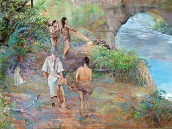 Keywords: artwork painting bridge pier bridge of the god oregon usa
