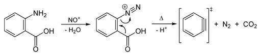 Keywords: Aryne anthranilic acid.svg en Generation of a aryne from anthranilic acid de Erzeugung eines Arins aus Anthranilsäure Own Yikrazuul 2008-11-24 Arynes