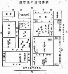 Keywords: Asahi19050622 mitorizu.gif en murder map ja 見取り図 Asahi Shimbun Asahi Shimbun 1905-06-22 PD-Japan-oldphoto Horie Murder