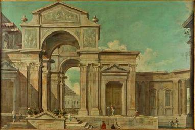| Keywords: Ascanio Luciani - Architectural capriccio with monumental building in the central arch surmounted by a pediment and bystanders in stylish clothes going for a walk.JPG Artwork creator Ascanio Luciani en Architectural capriccio with monumental building in the central arch surmounted by a pediment and bystanders in stylish clothes going for a walk 1640 - 1706 http //www minervaauctions com/capriccio-architettonico-con-edificio-monumentale-ad-arco-centrale-sormontato-da-un-timpano-e-astanti-in-abiti-eleganti-a-passeggio-2/ oil canvas cm 148 5 224 Auctioned at Minerva Auctions on 27 March 2014 Vienna lot 2109 PD-old-100 Ascanio Luciani Capriccios |