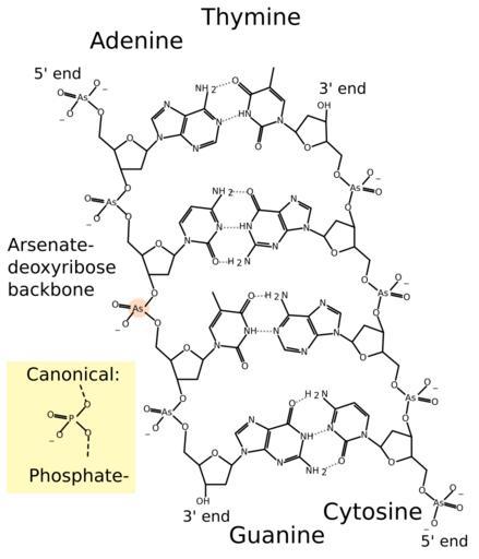 Keywords: AsDNA chemical structure.svg en Modified from DNA_chemical_structure svg for GFAJ-1 page Note This structure is a speculation drawn from the article and has not been proven own Squidonius GFAJ-1