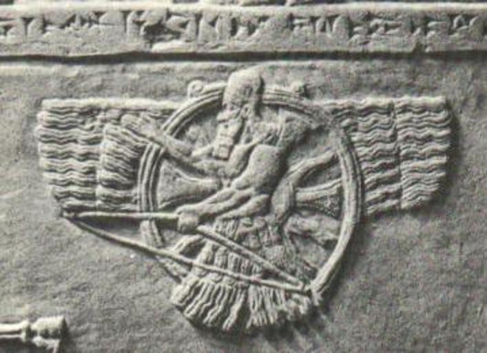 | Keywords: Ashur god.jpg Assyrian feather-robed archer figure superimposed over a winged sun symbol http //www sacred-texts com/ane/mba/mba20 htmhttp //www sacred-texts com/ane/mba/img/33400 jpg Myths of Babylonia and Assyria by Donald A Mackenzie 1915 <blockquote> Ashur was not a goat of heaven but a bull of heaven like the Sumerian Nannar Sin the moon god of Ur Ninip of Saturn and Bel Enlil As the bull however he was like Anshar the ruling animal of the heavens; and like Anshar he had associated with him six divinities of council Other deities who were similarly exalted as high heads at various centres and at various periods included Anu Bel Enlil and Ea Merodach Nergal and Shamash A symbol of the first three was a turban on a seat or altar which may have represented the world mountain Ea as the world spine was symbolized as a column with ram's head standing on a throne beside which crouched a goat fish Merodach's column terminated in a lance head and the head of a lion crowned that of Nergal These columns were probably connected with pillar worship and therefore with tree worship the pillar being the trunk of the world tree The symbol of the sun god Shamash was a disc from which flowed streams of water; his rays apparently were fertilizing tears like the rays of the Egyptian sun god Ra Horus the Egyptian falcon god was symbolized as the winged solar disc It is necessary to accumulate these details regarding other deities and their symbols before dealing with Ashur The symbols of Ashur must be studied because they are one of the sources of our knowledge regarding the god's origin and character These include 1 a winged disc with horns enclosing four circles revolving round a middle circle; rippling rays fall down from either side of the disc; 2 a circle or wheel suspended from wings and enclosing a warrior drawing his bow to discharge an arrow; and 3 the same circle; the warrior's bow however is carried in his left hand while the right hand is uplifted as if to bless his worshippers These symbols are taken from seal cylinders An Assyrian standard which probably represented the world column has the disc mounted on a bull's head with horns The upper part of the disc is occupied by a warrior whose head part of his bow and the point of his arrow protrude from the circle The rippling water rays are V-shaped and two bulls treading river-like rays occupy the divisions thus formed There are also two heads--a lion's and a man's--with gaping mouths which may symbolize tempests the destroying power of the sun or the sources of the Tigris and Euphrates Jastrow regards the winged disc as the purer and more genuine symbol of Ashur as a solar deity He calls it a sun disc with protruding rays and says To this symbol the warrior with the bow and arrow was added--a despiritualization that reflects the martial spirit of the Assyrian empire </blockquote> Transferred from http //en wikipedia org en wikipedia 2007-04-29 Original uploader was Šarukinu at http //en wikipedia org en wikipedia PD-US; PD-ART PD-US PD-art original upload log page en wikipedia Ashur_god jpg 2007-04-29 23 24 Šarukinu 359×260× 35244 bytes <nowiki>A stone relief depicting the Assyrian god Ashur </nowiki> Archaeological objects Mythology Assyrian people Ashur god |