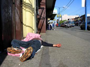 Keywords: Asleep on Hastings.jpg en Many homeless or otherwise disadvantaged people sleep in public Seen on Hastings near Main in Vancouver BC Canada Own Name invalid 2008-05-07 Vancouver BC Canada Poverty in Vancouver