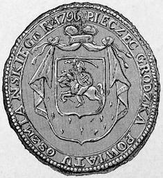 | Keywords: Ašmiany, Pahonia. Ашмяны, Пагоня (1796).jpg Ашмянскага павету з ге бам «Пагоня» «Pahonia» Jankowski Cz Powiat oszmiański materjały do dziejów ziemi i ludzi Cz 1 Petersburg Kraków 1896 S 87 author before 1896 PD-old History of Ašmiany Historical images of Pahonia Coats of arms of Ašmiany |