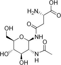 Keywords: Aspartylglucosamine.png chemical structure of aspartylglucosamine Own 19 51 5 June 2008 UTC Edgar181 Amino sugars Glycosides