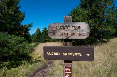 | Keywords: azt azt-34 arizona trail passage 34 azt34arizonatrailpassage34 arizona arizona national scenic trail arizonanationalscenictrail arizona trail arizonatrail arizona trail no. 87 arizonatrailno87 coconino national forest coconinonationalforest flagstaff flagstaff ranger district flagstaffrangerdistrict forest service forestservice national forest nationalforest san francisco mountain sanfranciscomountain san francisco peaks sanfranciscopeaks usfs forest hiking outdoors sign trail trail sign trailsign united states unitedstates outdoor text signboard The Arizona Trail intersects Aspen Loop less than a mile from the Arizona Snowbowl. On the southwestern side of the San Francisco Peaks, Arizona Trail Passage 34 drops gently from the junction of Aspen Loop, heading north across the top of Hart Prarie. The trail skirts the edge of the Kachina Peaks Wilderness, instersecting Bismarck Lake Trail approximately 2 miles from Aspen Loop. This section of trail offers fantastic views of the Humphreys and Agassiz Peaks of the San Francisco Peaks, as well as stunning vistas of Hart Prarie, Kendrick Mountain, and surrounding area. Photo by Deborah Lee Soltesz, September 2015. Source: U.S. Forest Service, Coconino National Forest. See Bismarck Lake and Aspen Loop trail descriptions for information about these Arizona Trail Passage 34 access trails on the Coconino National Forest website. The Arizona Trail intersects Aspen Loop less than a mile from the Arizona Snowbowl. On the southwestern side of the San Francisco Peaks, Arizona Trail Passage 34 drops gently from the junction of Aspen Loop, heading north across the top of Hart Prarie. The trail skirts the edge of the Kachina Peaks Wilderness, instersecting Bismarck Lake Trail approximately 2 miles from Aspen Loop. This section of trail offers fantastic views of the Humphreys and Agassiz Peaks of the San Francisco Peaks, as well as stunning vistas of Hart Prarie, Kendrick Mountain, and surrounding area. Photo by Deborah Lee Soltesz, September 2015. Source: U.S. Forest Service, Coconino National Forest. See Bismarck Lake and Aspen Loop trail descriptions for information about these Arizona Trail Passage 34 access trails on the Coconino National Forest website. |