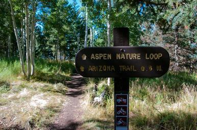 Keywords: arizona aspen loop aspenloop aspen loop trail aspenlooptrail aspen loop trail no. 73 aspenlooptrailno73 aspen nature loop aspennatureloop aspen nature trail aspennaturetrail coconino national forest coconinonationalforest flagstaff flagstaff ranger district flagstaffrangerdistrict forest service forestservice national forest nationalforest san francisco mountain sanfranciscomountain san francisco peaks sanfranciscopeaks usfs forest hiking outdoors sign trail trail sign trailsign united states unitedstates outdoor On the western flank of the San Francisco Peaks, Aspen Loop Trail is a moderate 2 mile loop trail descending through a beautiful forest of aspen, fir, and pine to meet the Arizona National Scenic Trail Passage 34. The trail offers views of the San Francisco Peaks, Kendrick Mountain, and hills to the west of the Peaks. The trail splits at around the half-mile mark. Follow either fork to the Arizona Trail, and follow the signs along the Arizona Trail to the return trail to complete the loop. The trailhead is at the Humphreys Trailhead just below the Arizona Snowbowl. Photo by Deborah Lee Soltesz, September 2015. Credit: U.S. Forest Service, Coconino National Forest. For more information about this trail, see the Aspen Loop trail description on the Coconino National Forest website. On the western flank of the San Francisco Peaks, Aspen Loop Trail is a moderate 2 mile loop trail descending through a beautiful forest of aspen, fir, and pine to meet the Arizona National Scenic Trail Passage 34. The trail offers views of the San Francisco Peaks, Kendrick Mountain, and hills to the west of the Peaks. The trail splits at around the half-mile mark. Follow either fork to the Arizona Trail, and follow the signs along the Arizona Trail to the return trail to complete the loop. The trailhead is at the Humphreys Trailhead just below the Arizona Snowbowl. Photo by Deborah Lee Soltesz, September 2015. Credit: U.S. Forest Service, Coconino National Forest. For more information about this trail, see the Aspen Loop trail description on the Coconino National Forest website.