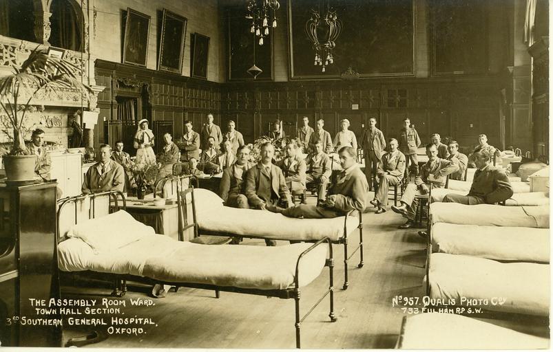 | Keywords: world war one worldwarone wwi monochrome Local Accession Number: PC 77 Description: The Assembly Room Ward at the 3rd Southern General Hospital in Oxford, England. Photographer: Unknown Source: Collection of Anna Nevins Size: 3x5 Medium: Print, Sepia Date: c. 1918 Local Accession Number: PC 77 Description: The Assembly Room Ward at the 3rd Southern General Hospital in Oxford, England. Photographer: Unknown Source: Collection of Anna Nevins Size: 3x5 Medium: Print, Sepia Date: c. 1918 | ||||