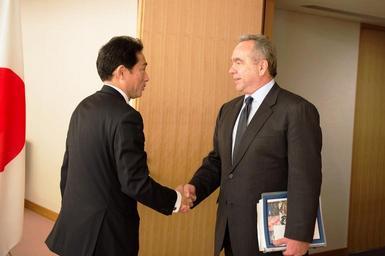 | Keywords: Assistant Secretary Campbell Is Greeted By Japanese Foreign Minister Kishida.jpg en Assistant Secretary of State for East Asian and Pacific Affairs Kurt M Campbell is greeted by Japanese Foreign Minister Fumio Kishida before their meeting at the Ministry of Foreign Affairs in Tokyo Japan January 17 2013 State Department photo by William Ng/ Public Domain 2013-02-04 18 52 39 http //www flickr com/photos/statephotos/8390479474/sizes/o/in/photostream/ U S Department of State U S Department of State http //flickr com/photos/9364837 N06/8390479474 2013-02-04 13 50 12 United States Government Work PD-USGov Kurt M Campbell Fumio Kishida in 2013 Uploaded with UploadWizard |