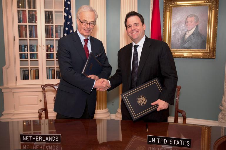 | Keywords: Assistant Secretary Shapiro and Ambassador Bekink Shake Hands.jpg en Assistant Secretary of State for Political-Military Affairs Andrew J Shapiro and Kingdom of the Netherlands Ambassador Rudolf Bekink shake hands after signing a new U S -Kingdom of the Netherlands Status of Forces Agreement covering the Kingdom ™s territories in the Caribbean at the U S Department of State October 19 2012 U S Department of State photo/ Public Domain 2012-10-19 10 14 46 http //www flickr com/photos/statephotos/8103525841/sizes/o/in/photostream/ U S Department of State U S Department of State http //flickr com/photos/9364837 N06/8103525841 2013-02-04 17 51 32 United States Government Work PD-USGov Uploaded with UploadWizard Andrew J Shapiro |