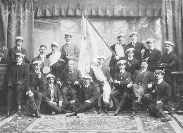 Keywords: Association of Greek students Geneva - Minerva.JPG en Members of the Association of Greek students in Geneva founded in 1878 under the name Minerva Seated left George Makrides seated third right Alexandros Prodromas el έλη του συλλόγου Ελλήνων φοιτητών στη Γενεύη με το όνομα ινέρβα Αριστερά καθιστός Γεώργιος ακρίδης δεξιά 3ος καθιστός Αλέξανδρος Προδρομάς fr Les membres de l'Association des étudiants grecs à Genève sous le nom de Minerva Siège Gauche George Makrides assis troisième à droite Alexander Prodromos early 20th century http //www omegatechnology gr/epm2/photos aspx page 115 Ε ιτρο ή Ποντιακών ελετών author PD-Old Greek diaspora in Switzerland Studentenverbindungen in Switzerland |