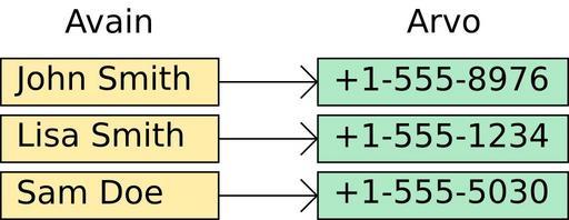 Keywords: Assosiaatiotaulu.svg Associative array in Finnish Own 01-04-2007 Aleksi Nurmi Check categories 2008 October 31 fi wikipedia Hakurakenne Data structures