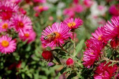 Keywords: aster pink bees honeybee nature plant blossom autumn garden petal floral summer bloom flora natural season bright color fresh fall flowers blooming colorful