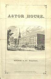 | Keywords: Astor House restaurant menu front page (January 2, 1862).jpg en Menus from hotels restaurants and steamboats in the 1850s and 60s The name STENSON CO Proprietors is prominently displayed on the title page of this menu Cover; complete item is 3 printed pages cover bill of fare wine list Presumably there is at least 1 blank page in the leaflet http //digital lib uh edu/u /p15195coll34 6 Hospitality Industry Archives 1862-01-02 as given on an inner page of the menu This image is in the public domain and may be used freely If publishing in print electronically or on a website please use the citation Courtesy of Special Collections University of Houston Libraries To order a higher resolution reproduction see http //info lib uh edu/about/campus-libraries-collections/special-collections-archives/request-digital University of Houston Libraries Derivative versions File Astor House New York City 1862 jpg 1862 in New York City Astor House 1862-01-02 Food menus J W Orr FAL |