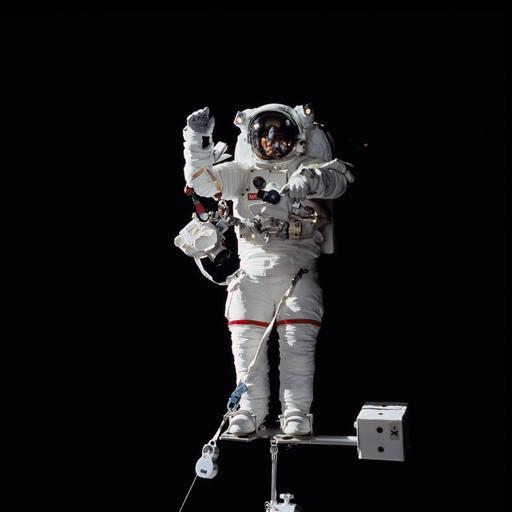 Keywords: astronaut spacewalk space spacecraft tools suit pack tether floating job maintenance extravehicular activity eva