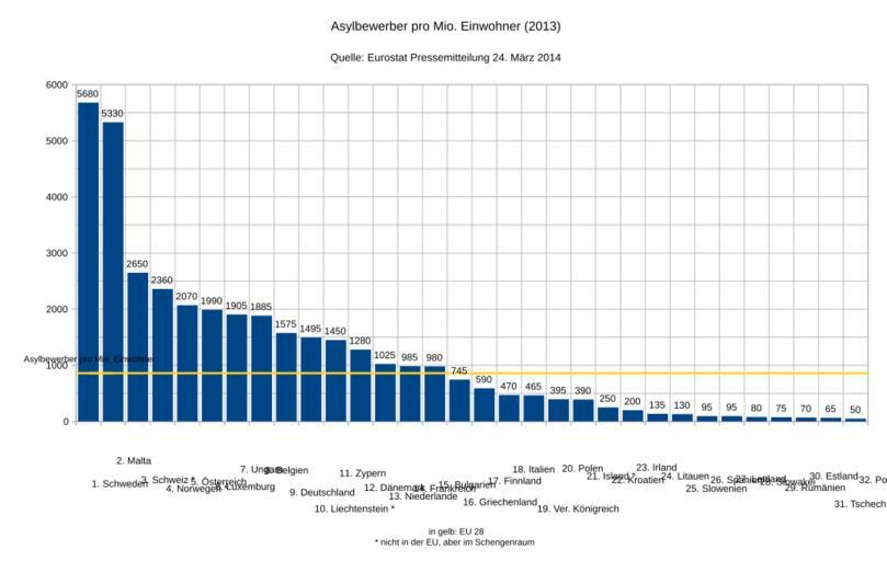 Keywords: AsylbewerberEuropaProMioEinwohner2013.svg de Asylbewerber pro Mio Einwohner 2013 in Europa 2014-12-15 own nach Daten von http //ec europa eu/eurostat/documents/2995521/5181442/3-24032014-AP-DE PDF/c97fa5ca-cf80-4322-9a44-ef5759e037e2 version 1 0 Eurostat Carsten Pietzsch other versions cc-zero Uploaded with UploadWizard Asyl European Union Schengen Agreement |