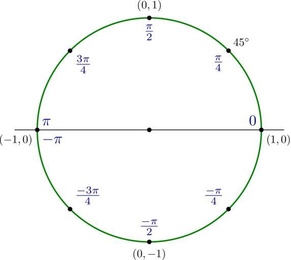 | Keywords: Atan2 circle.svg Values of atan2 on the unit circle Note that the value at -1 0 is always <math>\pi</math> but it approaches <math>-\pi</math> along the bottom half of the circle self-made using design of the bitmap version 2009-07-13 Qef Bitmap version en File Atan2_circle png this SVG version doesn't include the textual comment because it's hard to do in MetaPost and this version will also be useable in other languages Other fields M + metapost-source mpost fig mp ps2pdf -dEPSCrop fig 1 fig pdf pstoedit -page 1 -dt -xscale 2 -yscale 2 -f sk fig pdf fig sk inkscape -z --vacuum-defs -f fig sk -l fig svg prologues 3; input boxes beginfig 1 ; numeric textscale outtextscale radius; textscale 2; outtextscale 1 5; radius 150pt; dotlabeldiam 2dotlabeldiam; labeloffset 3labeloffset; numeric s; s radius sind 45 ; pickup pencircle scaled 1pt; draw -1 2radius 0 -- 1 2radius 0 ; pickup pencircle scaled 2pt; draw fullcircle scaled 2radius withcolor 0 5 0 ; label llft btex -1 0 etex scaled outtextscale -radius 0 ; label lrt btex 1 0 etex scaled outtextscale radius 0 ; label bot btex 0 -1 etex scaled outtextscale 0 -radius ; label top btex 0 1 etex scaled outtextscale 0 radius ; label urt btex 45 \circ etex scaled outtextscale s s ; vardef dot expr z interim linecap rounded; draw z withpen pencircle scaled dotlabeldiam; enddef; dot 0 0 ; dot radius 0 ; dot -radius 0 ; dot 0 radius ; dot 0 -radius ; dot s s ; dot -s s ; dot s -s ; dot -s -s ; color col; col 0 0 5 ; label ulft btex 0 etex scaled textscale radius 0 withcolor col; label llft btex \pi \over 4 etex scaled textscale s s withcolor col; label bot btex \pi \over 2 etex scaled textscale 0 radius withcolor col; label lrt btex 3\pi \over 4 etex scaled textscale -s s withcolor col; label urt btex \pi etex scaled textscale -radius 0 withcolor col; label lrt btex -\pi etex scaled textscale -radius 0 withcolor col; label urt btex -3\pi \over 4 etex scaled textscale -s -s withcolor col; label top btex -\pi \over 2 etex scaled textscale 0 -radius withcolor col; label ulft btex -\pi \over 4 etex scaled textscale s -s withcolor col; endfig; end cc-zero Arc tangent function |