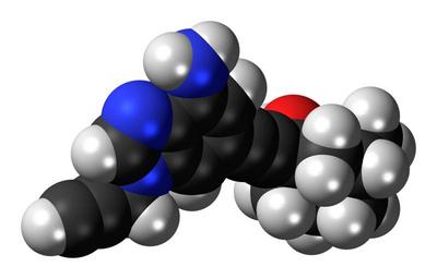 | Keywords: ATL-444 molecule spacefill.png Space-filling model of the ATL-444 molecule an adenosine receptor antagonist C H O N 2015-01-06 own DS Visualizer Jynto more from this user Ball-and-stick version cc-zero Images by Jynto Benzimidazoles Tertiary alcohols Alkyne derivatives Space-filling models |