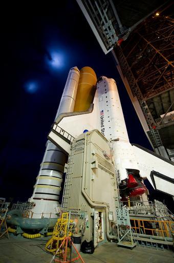 Keywords: atlantis space shuttle rollout launch pad pre-launch astronaut mission exploration spaceship rocket flight night