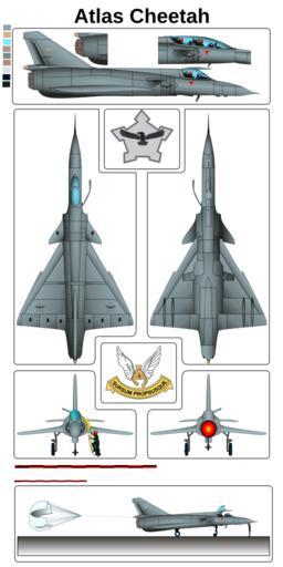 Keywords: Atlas Cheetah.svg Atlas Cheetah own 2008-02-21 Cuculcan Inkscape Cheetah SAAF SVG aircraft 3-views