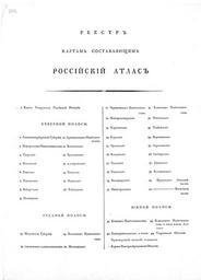 | Keywords: Atlas of Russian Empire (1792). Contents.jpg Соде жание «Российского атласа из со ока четы ех ка т состоящего и на со ок на два наместничества Импе ию азделяющего» 1792 en Contents of official Atlas of Russian Empire 1792 Российский атлас из со ока четы ех ка т состоящий и на со ок два наместничества импе ию азделяющий / Сочин г ави и печатан п и Го ном училище в 1792 г Соч А Вильдб ехт Г ави А Савинков И Леонов Вы ез Т ихайлов Александ ихайлович Вильб ехт en Aleksandr Mikhaylovich Vilbrekht 1792 PD-old-100 Atlas of Russian Empire 1792 year |
