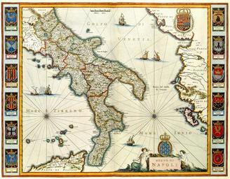 | Keywords: Atlas Van der Hagen-KW1049B12 079-REGNO DI NAPOLI.jpeg of the Atlas Van der Hagen in the catalogue of the KB http //opc4 kb nl/DB 1/TTL 1/LNG EN/PPN PPN 353012750 Publisher Creator Joan Blaeu and Cornelius Blaeu Publisher Creator Joan Blaeu and Cornelius Blaeu credit line 1640 Deze kaart van het zuidelijke deel van Italie werd in 1640 uitgegeven door de gebroeders Joan Blaeu 1598-1673 en Cornelius Blaeu ca 1610-1642 Het koninkrijk Napels maakte in die tijd deel uit van de Spaanse gebieden van het Habsburgse rijk In de rechter bovenhoek zien we het spaanse wapen De kaart is verder fraai versierd met de kleurige provinciewapens in de kaartrand Als bron voor deze kaart maakte Blaeu gebruik van een atlas van de Italiaanse kartograaf Giovanni Antonio Magini 1555-1617 wiens kaartboek Italia in 1620 postuum in Bologna was uitgegeven This map of the southern part of Italy was published in 1640 by the brothers Joan Blaeu 1598-1673 and Cornelius Blaeu 1610-1642 The kingdom of Napels was at the time part of Spanish territory of the Habsburg Empire In the right top corner the Spanish coat of arms can be distinguished The map is further beautifully decorated with coats of arms of the provinces in the margins As a source for this map Blaeu used an atlas by the Italian cartographer Giovanni Antonio Magini 1555-1617 His map book Italia was posthumous published in Bologna in 1620 38 x 50 cm exhibition history Institution Koninklijke Bibliotheek kopergravure Technique copper engraving KW1049B12_079 - Volume 1 Cornelius Blaeu - Giovanni Antonio Magini - Joan Blaeu Information field Depicted locations Napels kingdom - Italy object history object type Kaart Map PD-old-100 place of creation Amsterdam place of discovery Source page at the http //resolver kb nl/resolve urn urn gvn KONB01 324 Geheugen van Nederland / Memory of the Netherlands website Koninklijke Bibliotheek REGNO DI NAPOLI Uploaded with GWToolset Atlas Van der Hagen-KW1049B12_079-REGNO DI NAPOLI http //resolver kb nl/resolve urn urn gvn KONB01 1049B12_079 size large Atlas van der Hagen |