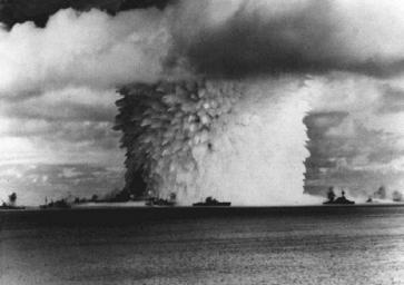 | Keywords: Atombombentest Crossroads-Baker.jpg Kernwaffentest Crossroads-Baker im Bikini-Atoll Zehn Sekunden nach der Zündung der Atombombe wurde dieses Bild von der Insel Eneu aufgenommen Vorne Links ist der amerikanische Flugzeugträger USS Saratoga CV-3 mit leichter Schlagseite zu sehen 8 der 71 Schiffe wurden durch die Explosion versenkt darunter auch die USS Saratoga http //memory loc gov/master/pnp/cph/3b10000/3b13000/3b13500/3b13566u tif Library of Congress U S Army Photographic Signal Corps 1946-07-25 http //nuclearweaponarchive org/Usa/Tests/Crossrd html See below PD-USGov This image was copied from wikipedia de wikitable border 1 date/time username edit summary -- 01 42 8 Jan 2006 Denniss -- 18 01 4 Okt 2004 W wolny Bildbeschreibung -- 17 54 4 Okt 2004 W wolny Crossroads Baker USS New York BB-34 USS Saratoga CV-3 ImageNote 1 369 386 101 33 800 565 2 USS Saratoga ImageNoteEnd 1 ImageNote 2 639 373 76 41 800 565 2 USS New York ImageNoteEnd 2 |