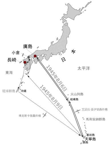 | Keywords: Atomic bomb 1945 mission map zh-hant.svg Atomic bomb 1945 mission map svg 2012-05-11 own Siyuwj <gallery> File Atomic bomb 1945 mission map svg language en File Atomic bomb 1945 mission map zh-hans svg language zh-hans File Atomic bomb 1945 mission heb jpg language heb </gallery> cc-zero Uploaded with UploadWizard Atomic bombings of Hiroshima and Nagasaki |