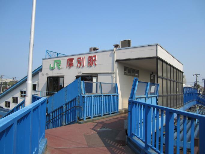 Keywords: Atsubetsu Sta West.JPG ja 北海道旅客鉄道函館 線厚別駅西口駅舎 2012-05-21 own Ninosan cc-zero Uploaded with UploadWizard Atsubetsu Station