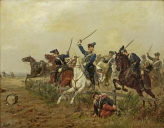 | Keywords: Attackierendes deutsches Husarenregiment.jpg Artwork Creator Emil Hünten 1886 Oil on canvas cm 52 5 67 5 object history credit line L u sign u dat 18 86 http //www beyars com/partner-objekt_261740_emil-huenten html Kunstauktionshaus Schloss Ahlden Mai 2010 via beyars com PD-old-100 DEFAULTSORT Hunten Emil; Franco-Prussian War 1870-1871 ; Schloss Ahlden 2010 Uploaded with UploadWizard Paintings by Emil Hünten German cavalry during the Franco-Prussian War 1870-1871 | ||||