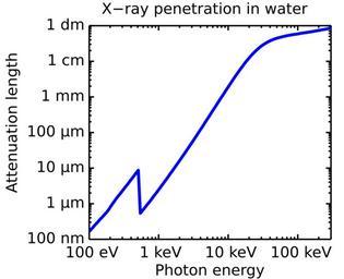 | Keywords: Attenuation.svg en The attenuation length of x-rays in water as function of photon energy 2012-11-07 16 46 52 own Ulflund Data for the soft X-ray part energies below 5 keV is taken from CXRO http //henke lbl gov/optical_constants/ Center for X-ray optics at Lawrence Berkeley National Laboratory Data for the hard X-ray part energies above 5 keV is taken NIST http //www nist gov/pml/data/xraycoef/index cfm National Institute of Standards and Technology cc-zero Uploaded with UploadWizard Radar principles X-rays |