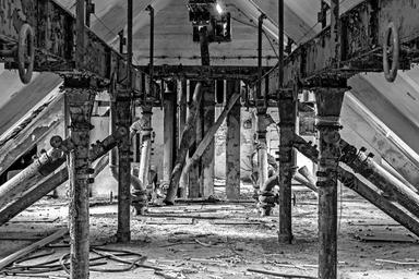 Keywords: attic old truss building roof truss still life black and white recording decay ailing historically