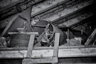 Keywords: attic stall lumber iron metal wood old black and white recording